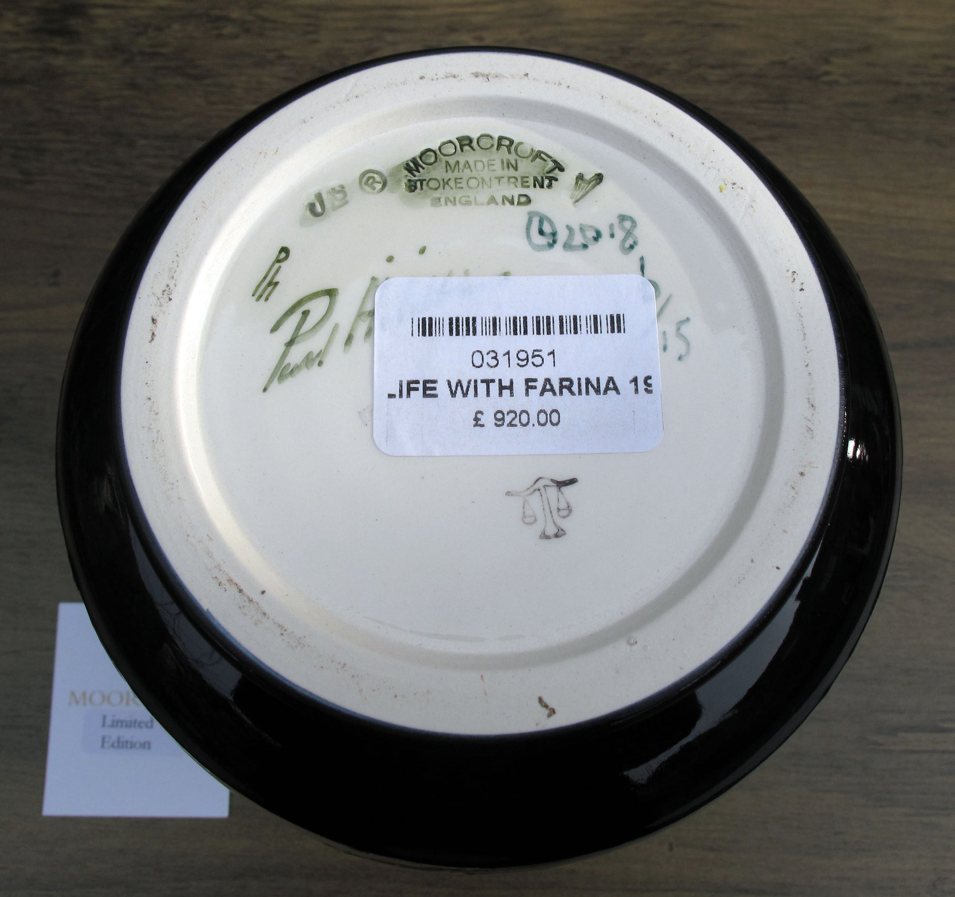 Moorcroft's First Quality Retail Price £920, with the original Retail Label on the base