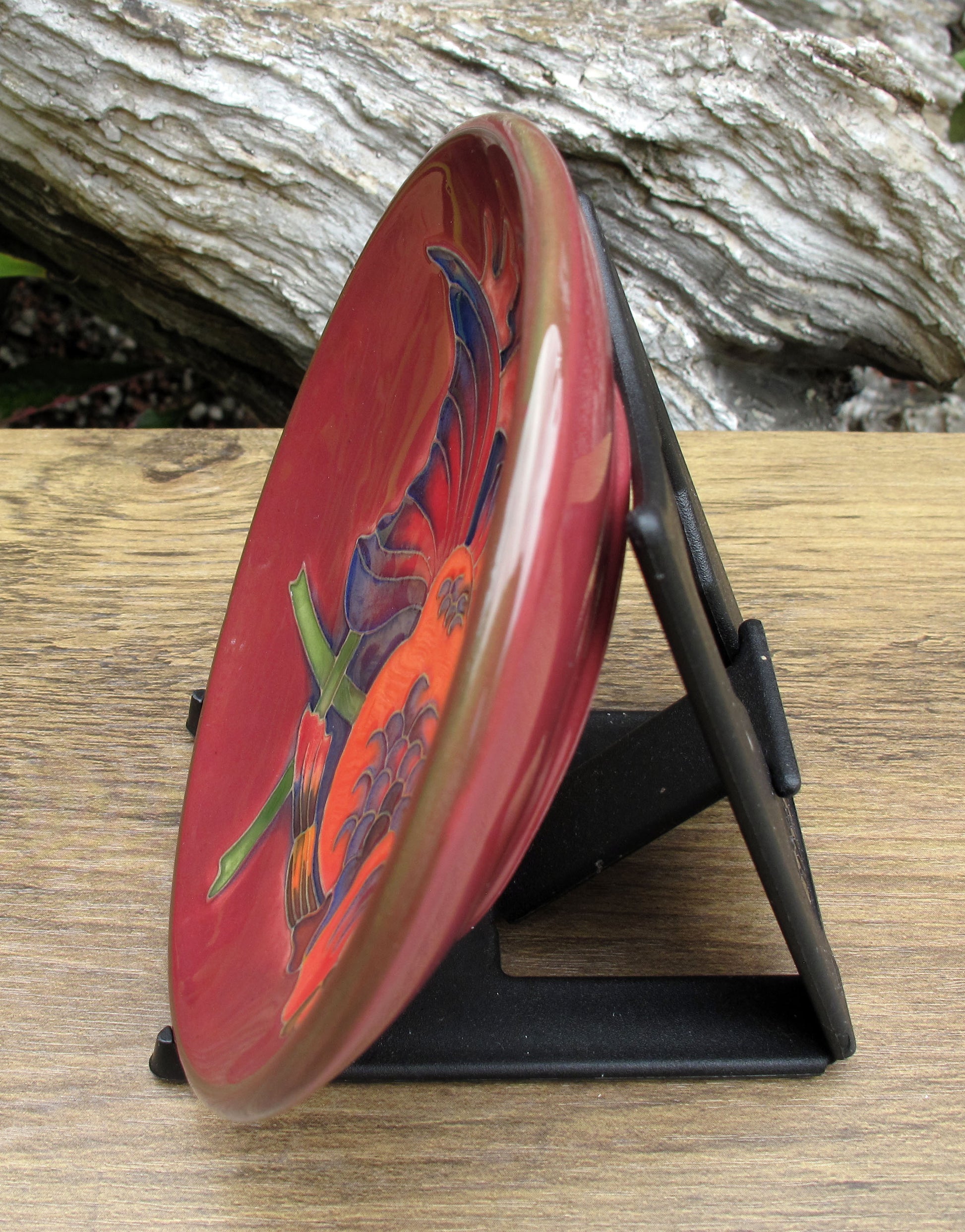 By little short of a miracle, the technique of flambé painting was discovered. It was not dangerous. No lead is used and carbon monoxide is not a nasty by-product. That said, only two Moorcroft artists have discovered how to paint in the flambé way and that flambé work is the finest carried out at Moorcroft today.