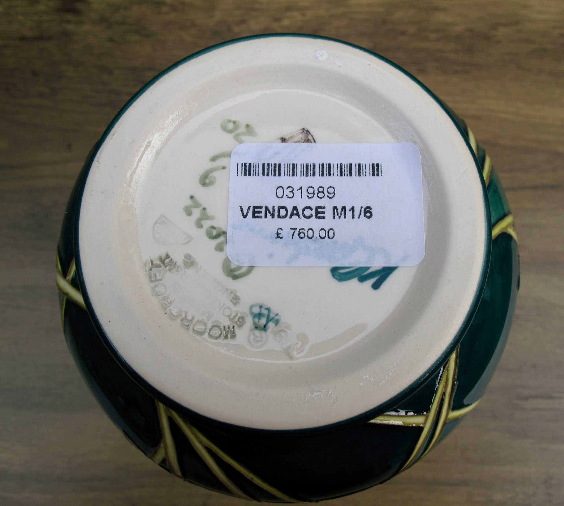Moorcroft's First Quality Retail Price £760 with the original label on the base