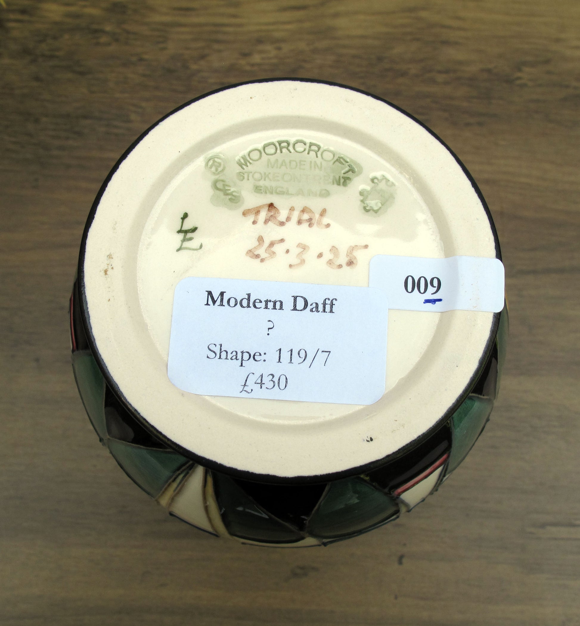 Moorcroft Very Rare MODERN DAFF Vase 119/7 Trial Date 25.3.25 Retail Price £430